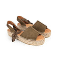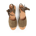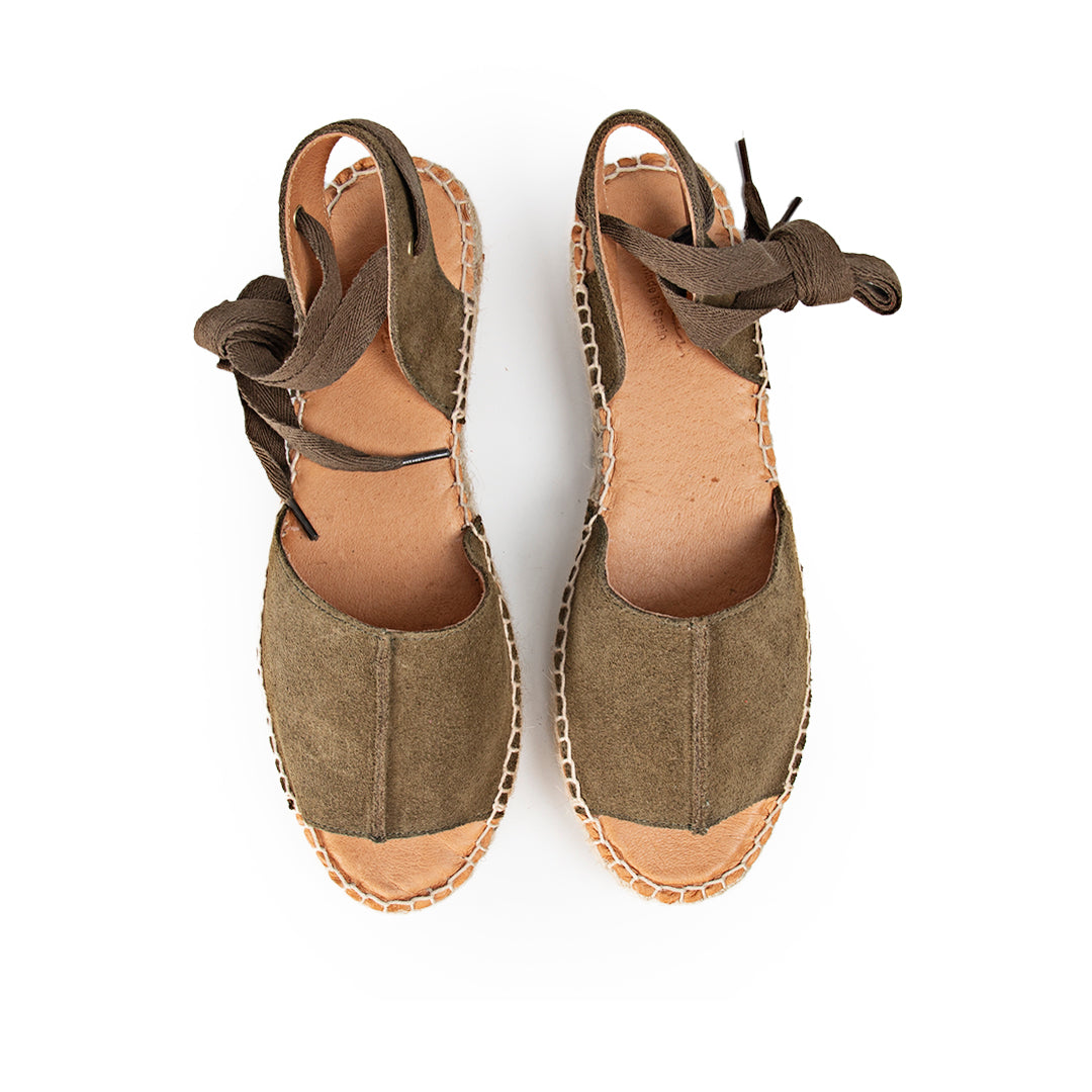 Sandalia Tarida pala y tira en talon en piel serraje con lazo atado a la pierna y con planta super acolchada, para mayor comodidad. Piso de yute natural y suela de caucho.
