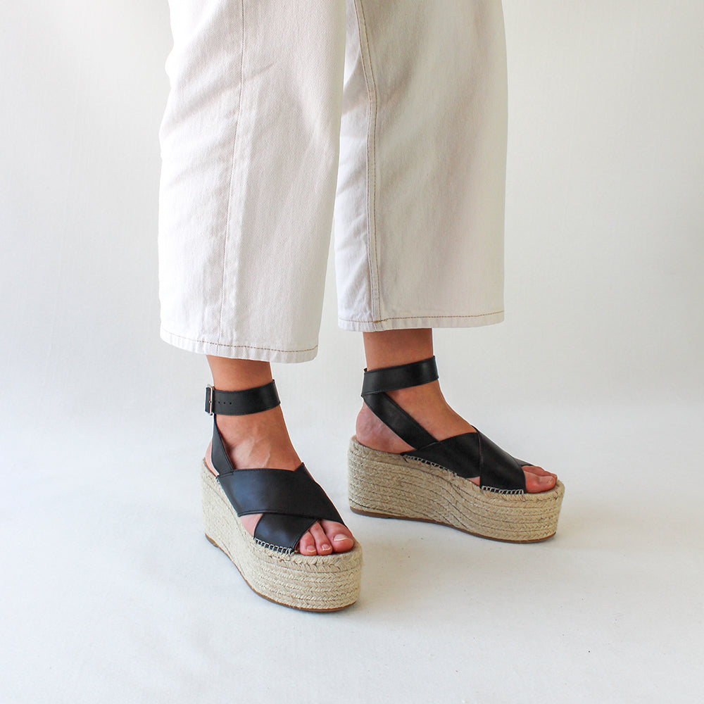 - Plataforma con altura de 9 cm de tacón y 6cm de puntera.