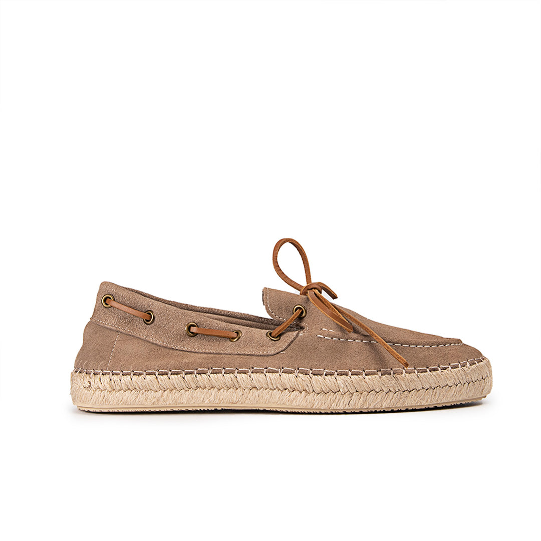 Espardeña hombre Cavallet de piel serraje taupe con elasticos flúor