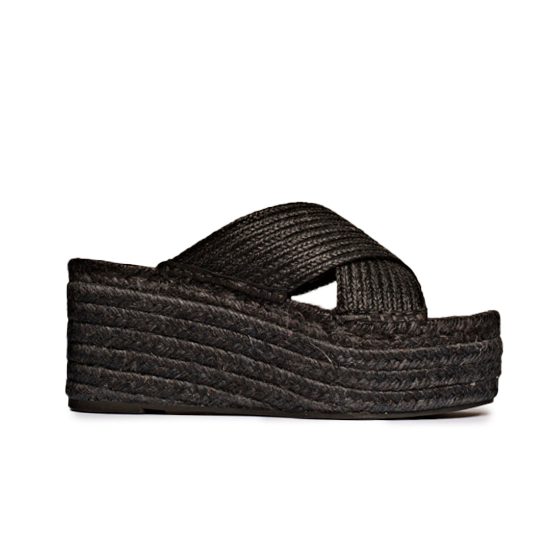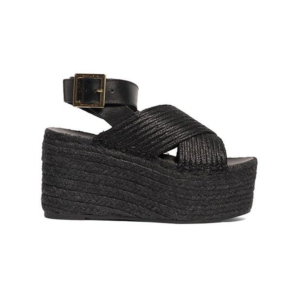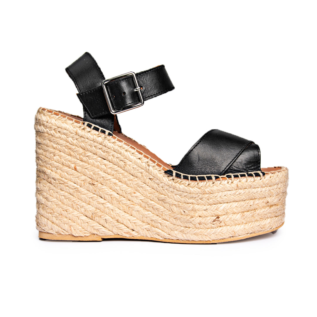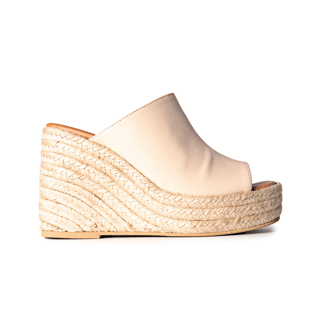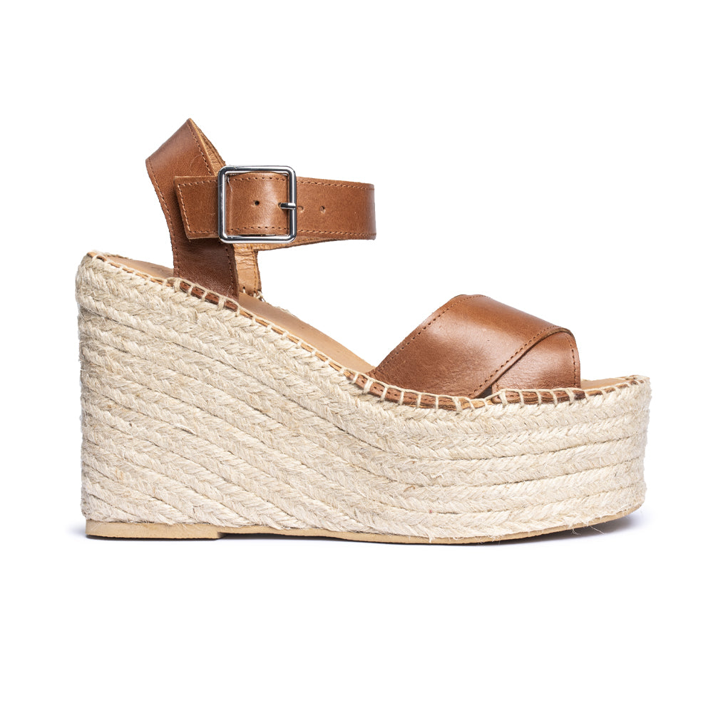 Sandale à semelle compensée fabriquée en 100% cuir. Avec un design croisé sur la pelle...
