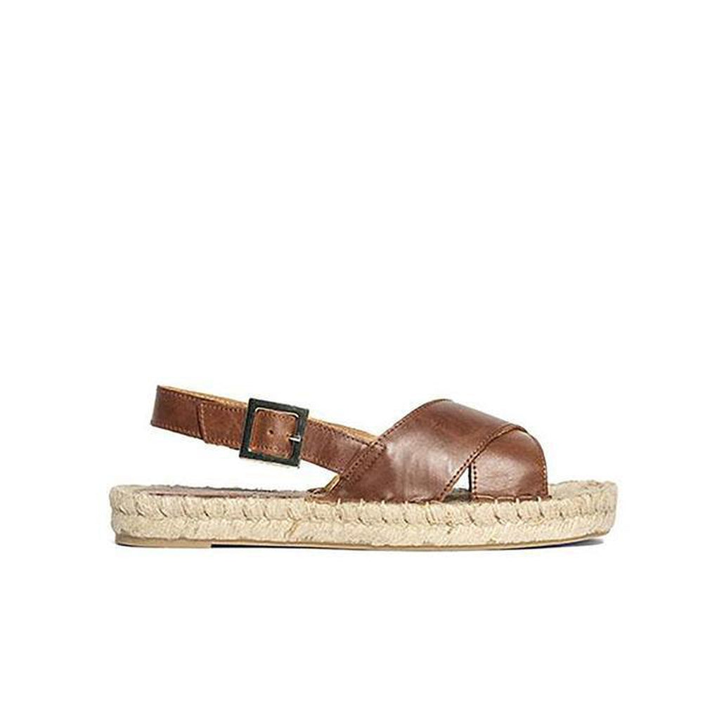 Sandale à semelle compensée fabriquée en 100% cuir. Avec un design croisé sur la pelle...