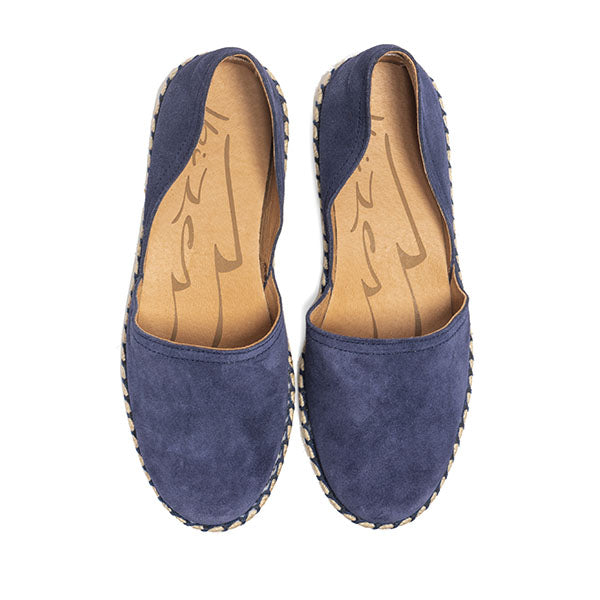 Camping 100% cuir refendu, avec une bande de jute naturelle. Grande adhérence. Hauteur de 1,5 cm et semelle intérieure en cuir, pour améliorer la transpiration pendant les mois chauds.