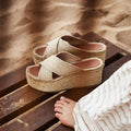 Sandales en raphia croisé, très confortable, tant pour votre travail quotidien que pour vos loisirs, un modèle qui allie élégance, dynamisme et exclusivité.