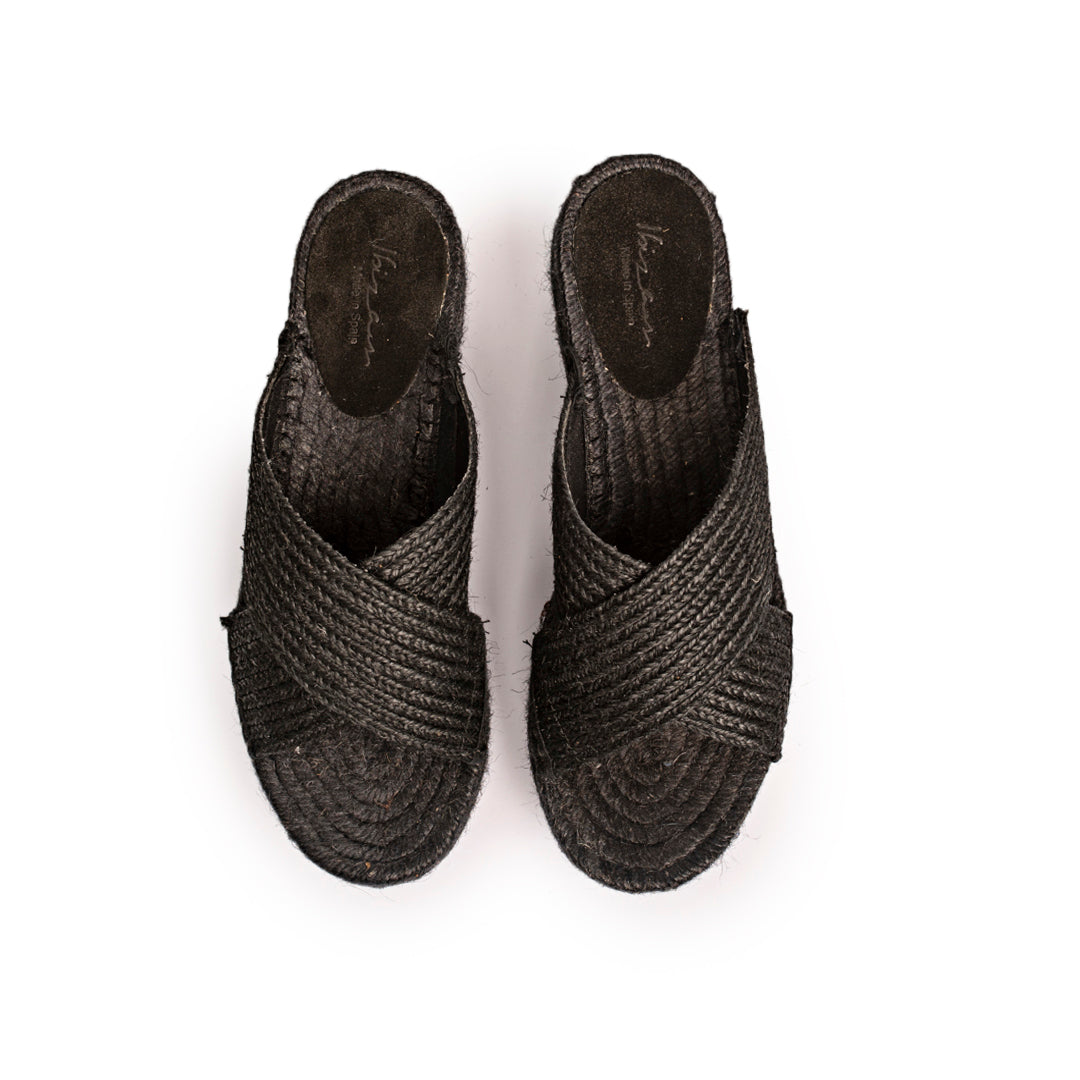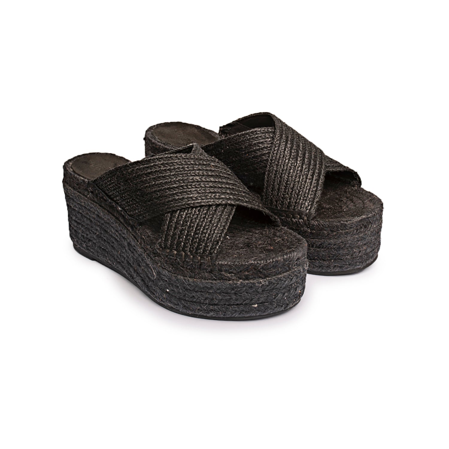 Cette pique naturelle ou noire croisée évoque les nuits d'été. Il a un talon de 10 cm, pour ceux qui recherchent un peu plus de hauteur dans leur look sans perdre le confort à chaque pas. Sa semelle intérieure en éponge doublée de cuir et le jute de sa semelle mettent la touche finale à cette Sandales dont vous ne vous séparerez pas.