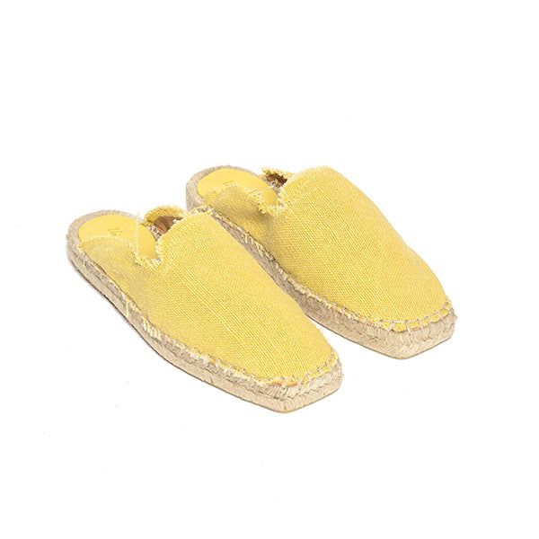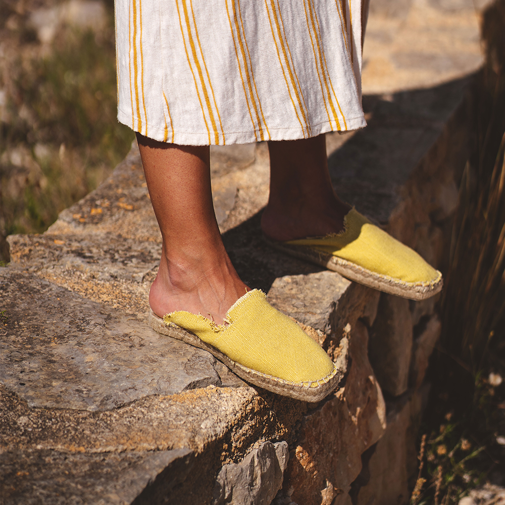 Sofisticadas alpargatas Cala Boix, fabricadas en algodón con los cantos deshilachados y puntera cuadrada.