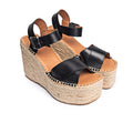 Las sandalias de cuña Cala Gracioneta están fabricadas en piel 100%. Con diseño cruzado en la pala y sujeción al tobillo con tira y hebilla para garantizar tu comodidad. Acabado brillante gracias a la calidad de sus materiales y su piel.