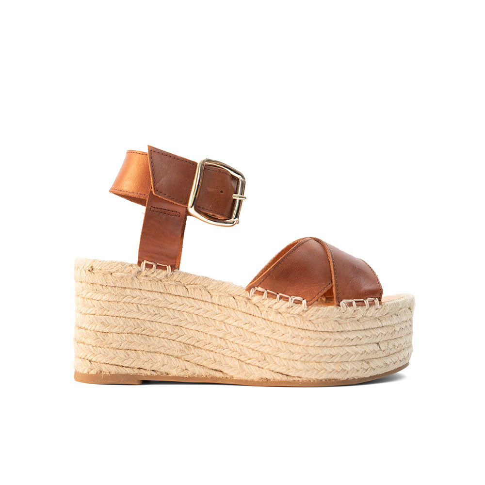 Las sandalia de cuña Es Canaret están fabricadas en piel 100%, con diseño cruzado en la pala, sujeción al tobillo con tira y hebilla para garantizar tu comodidad. Acabado brillante gracias a la calidad de sus materiales y su piel.