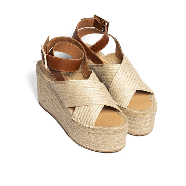 Sandalias de cuña Pou Des Lleo, pala cruzada de rafia y con correa de piel para una perfecta sujeción al tobillo, son ideales tanto para tu jornada diaria como para tus momentos de ocio, modelo que aúna elegancia, dinamismo y exclusividad.