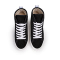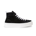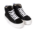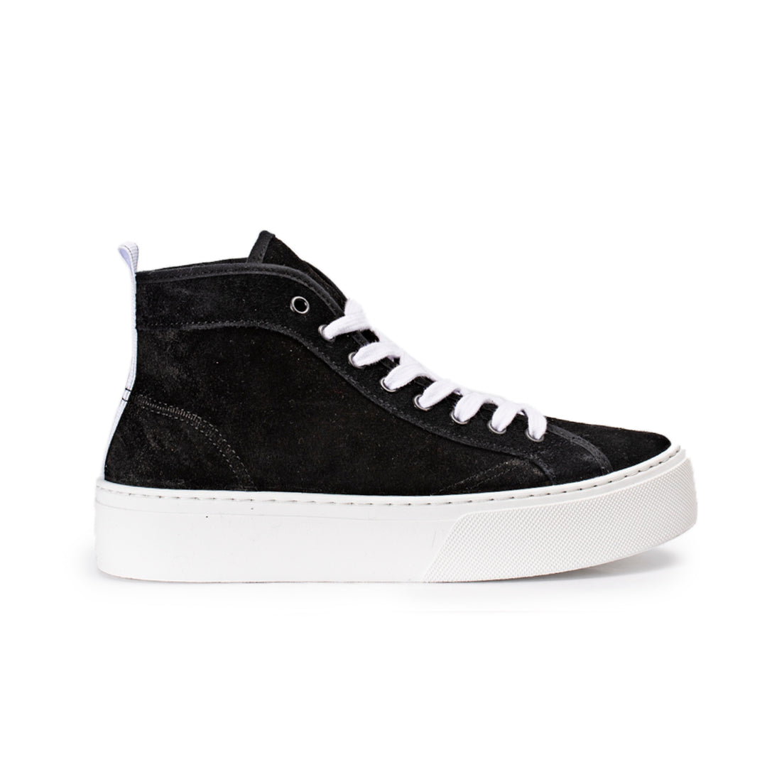Las zapatillas altas Cala Morisca de inspiración clásico-vintage en serraje negro con cordonera de algodón. Este modelo es perfecto para cualquier look, ideales para combinar con tus shorts favoritos!